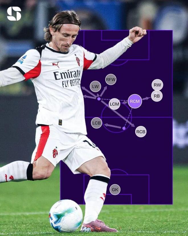 莫德里奇本赛季完成748次触球559次成功传球,均为意甲第一